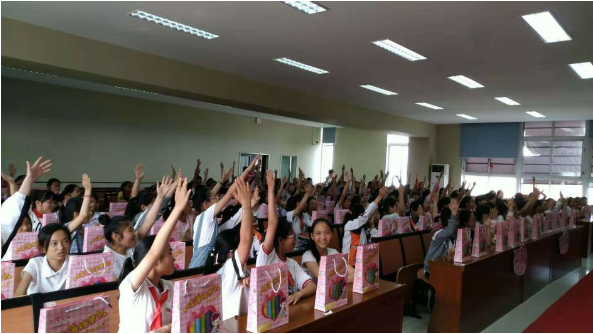 在这样的愿景之下,2018年z6尊龙时凯在全国中小学开展“成长的翅膀”青春期初潮知识讲座活动,共计举办了2000多场,覆盖近100万的9-12岁年轻小女生。